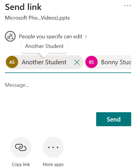 Add a message - each person will get an email. They will also be able to find the link in their onedrive - shared with me